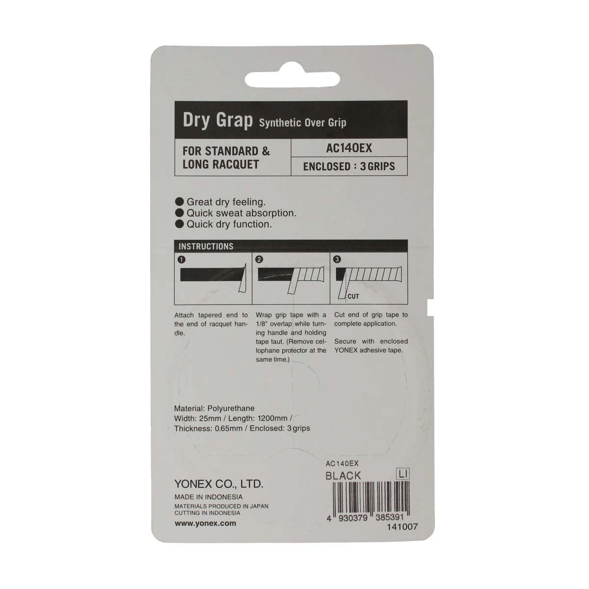 Yonex Dry Grap Overgrip 3 Pack (Black) Details